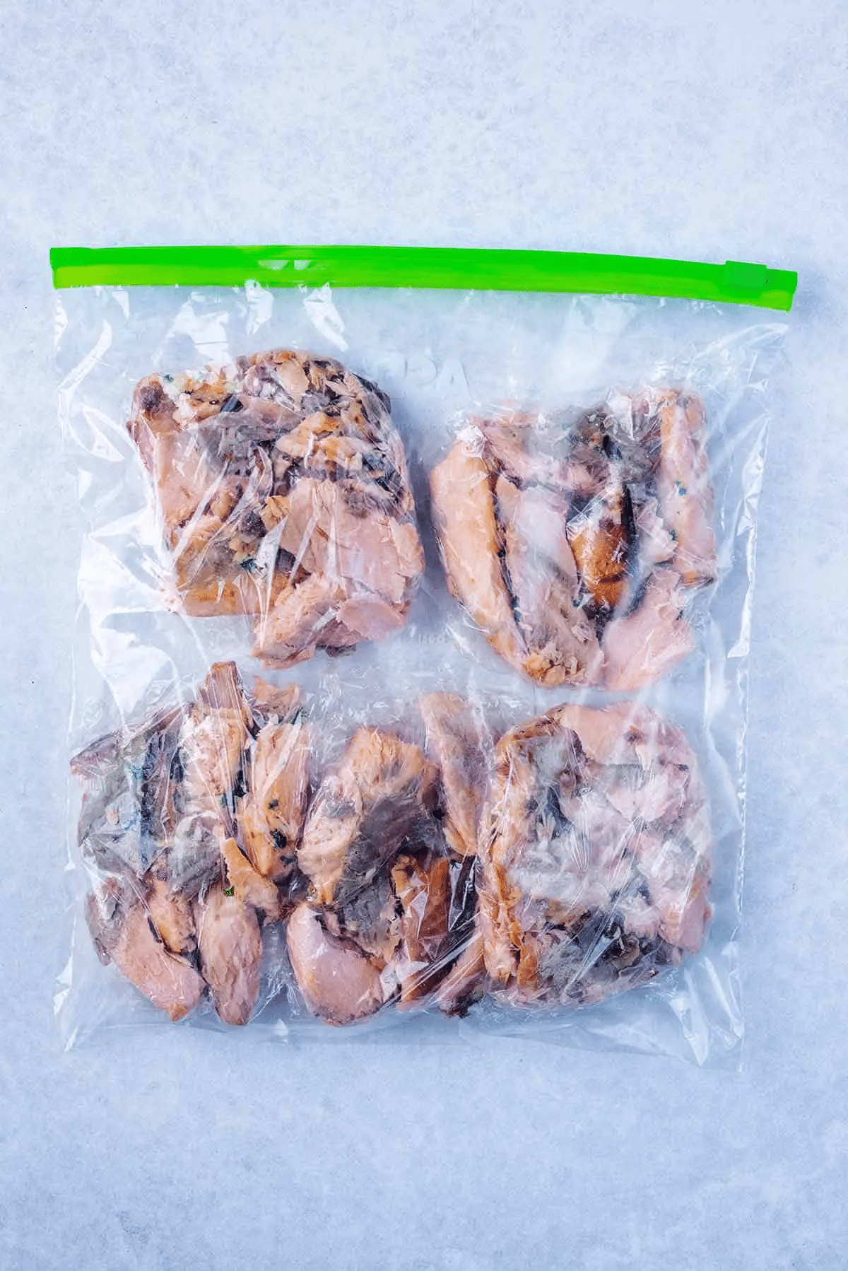 Répartissez le saumon cuit en portions de 90 g chacune et emballez chaque portion individuellement.
