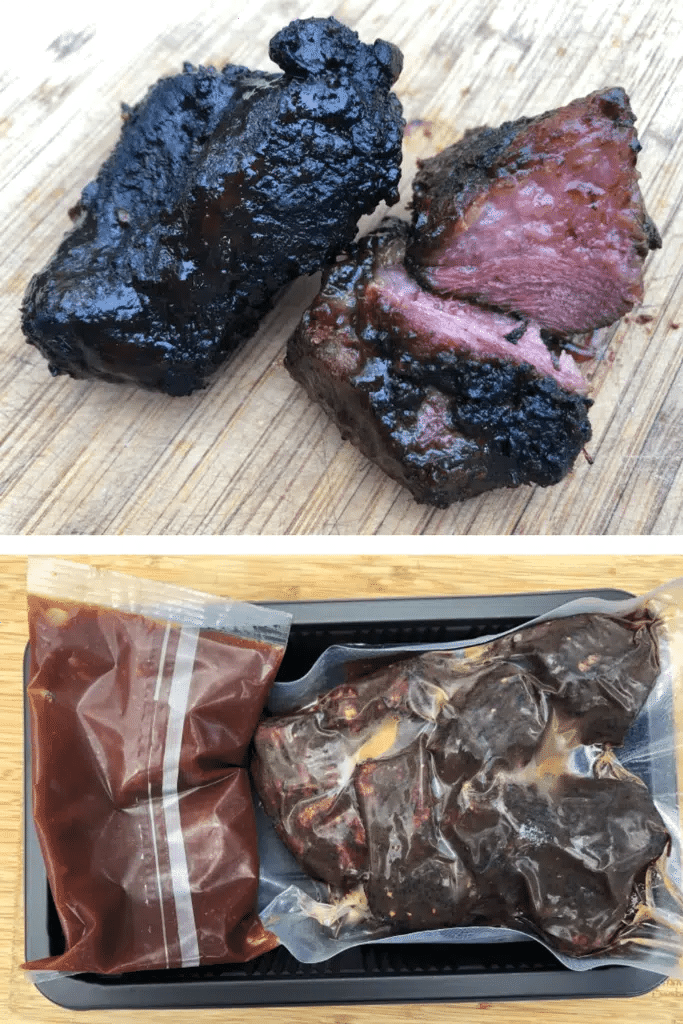 2- Placez l’ensemble du paquet de burnt ends sous vide dans la casserole et éteignez le feu.