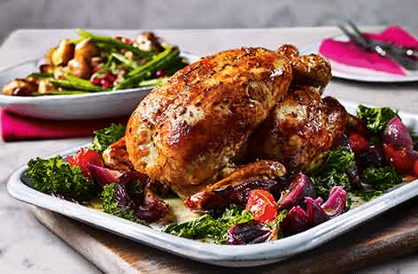 Les agrumes comme les oranges, les citrons et les limes ajoutent une saveur piquante au poulet rôti. Après avoir utilisé le jus et le zeste pour assaisonner la peau, placez le fruit entier dans la cavité du poulet et faites-le rôtir. Le fruit va cuire à la vapeur et donner une délicieuse saveur aromatique d’agrumes à l’ensemble de la volaille pendant la cuisson. Essayez-le avec ce poulet de style méditerranéen garni d’une salsa piquante au citron et au basilic, ou avec cette recette traditionnelle de poulet rôti au citron et au thym, qui bénéficie de la saveur des croûtons épicés au chorizo.