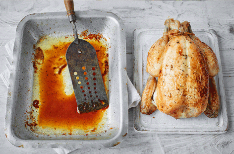Un simple poulet rôti peut être rehaussé d’une nouvelle saveur avec une sauce de choix. Mélangez de la farine au jus de viande et aux morceaux de peau caramélisés restés dans la rôtissoire pour obtenir une sauce simple. Ajoutez-y une bonne dose de vin ou de sherry, éventuellement du lard fumé frit ou des ingrédients tels que de la sauge, du citron, de la carotte ou des feuilles de laurier.