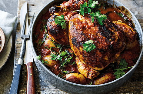 Inspiré par ce qui précède ? Essayez alors de mélanger les techniques et les saveurs. Ce pot-au-feu de poulet Bombay utilise une marinade au yaourt pour attendrir la viande, puis il est cuit avec une pâte épicée dans une sauce de type curry pour que la viande reste moelleuse. Quant à Jamie Oliver, il apporte une saveur supplémentaire à son poulet rôti en mélangeant différentes cuisines. Ses fajitas de poulet à l’harissa sont composées de poulet rôti aux épices nord-africaines, de légumes rôtis et d’une salade de chou piquante, le tout empilé dans des wraps moelleux. Le tout empilé dans des wraps moelleux.