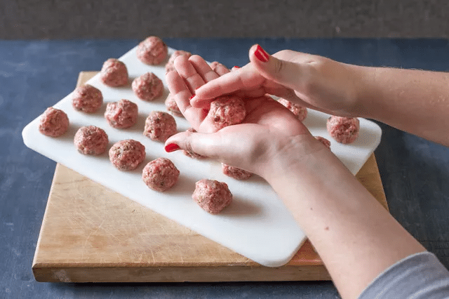 Pour que le pain de viande ne s’émiette pas, vous devez donc faire en sorte que ce tas de fibres musculaires détachées et séparées se rassemble sous une forme cohésive. L’un des moyens les plus simples d’y parvenir est de pétrir un peu la viande avant de la mettre en forme dans le moule pour la cuisson.