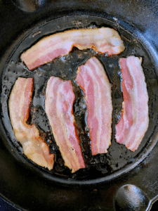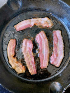 1– Versez l’excédent de graisse de bacon dans un récipient que vous conserverez pour d’autres recettes.
