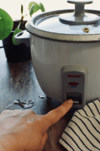Ce que j’aime dans l’utilisation d’un cuiseur à riz, c’est qu’il est pratiquement impossible de brûler le riz. Il suffit de le mettre en marche et de s’en aller !