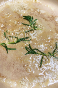 Préparer le beurre d’ail et le verser sur les steaks cuits.