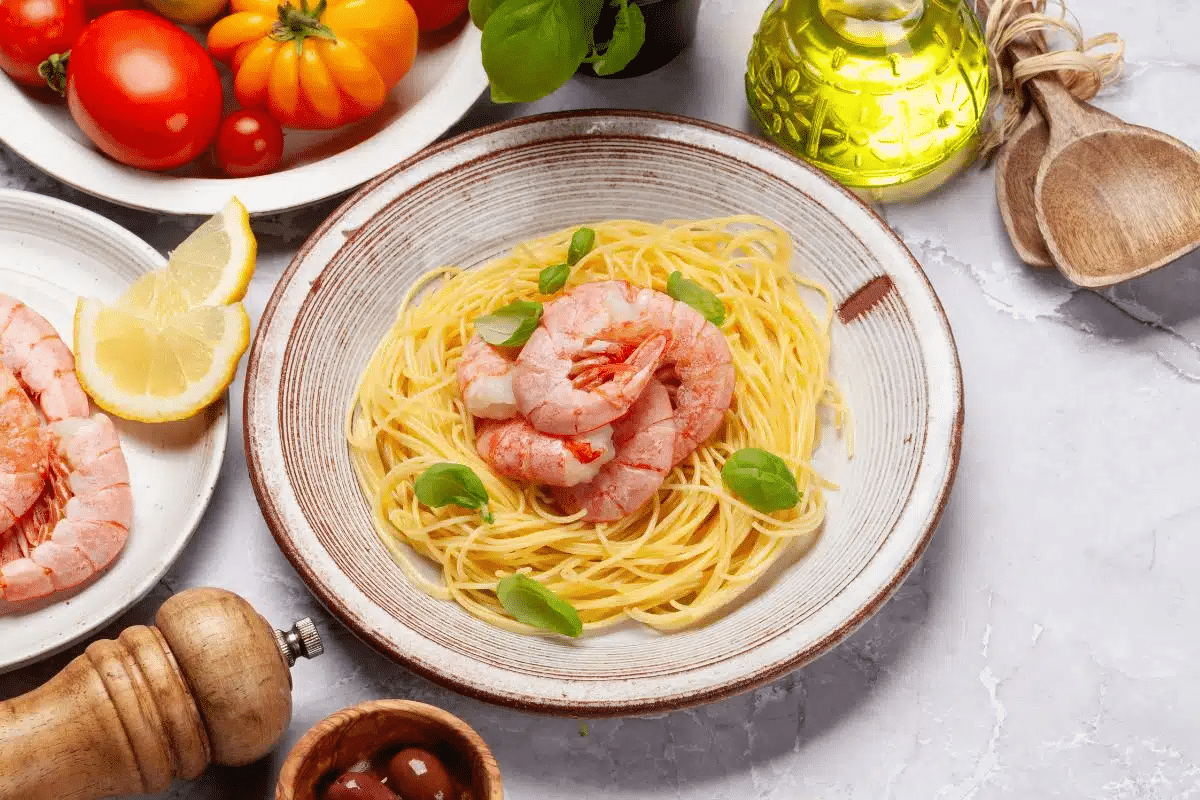 * Pâtes : Les scampi de crevettes et les crevettes Alfredo sont des plats populaires et nourrissants à base de crevettes.