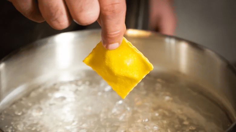 S’ils sont correctement scellés, vous n’aurez pas à craindre qu’ils se désagrègent dans l’eau bouillante. Mais lorsqu’il s’agit de vérifier si elles sont prêtes à être consommées, vous ne pouvez pas vraiment faire un test de cuisson comme vous le feriez pour un hamburger ou un steak. Vous pourriez retirer un morceau et le couper en deux, mais vous ruineriez un ravioli en parfait état. Il existe toutefois une astuce plus simple pour tester la cuisson, qui n’implique pas d’éviscérer complètement un ravioli.