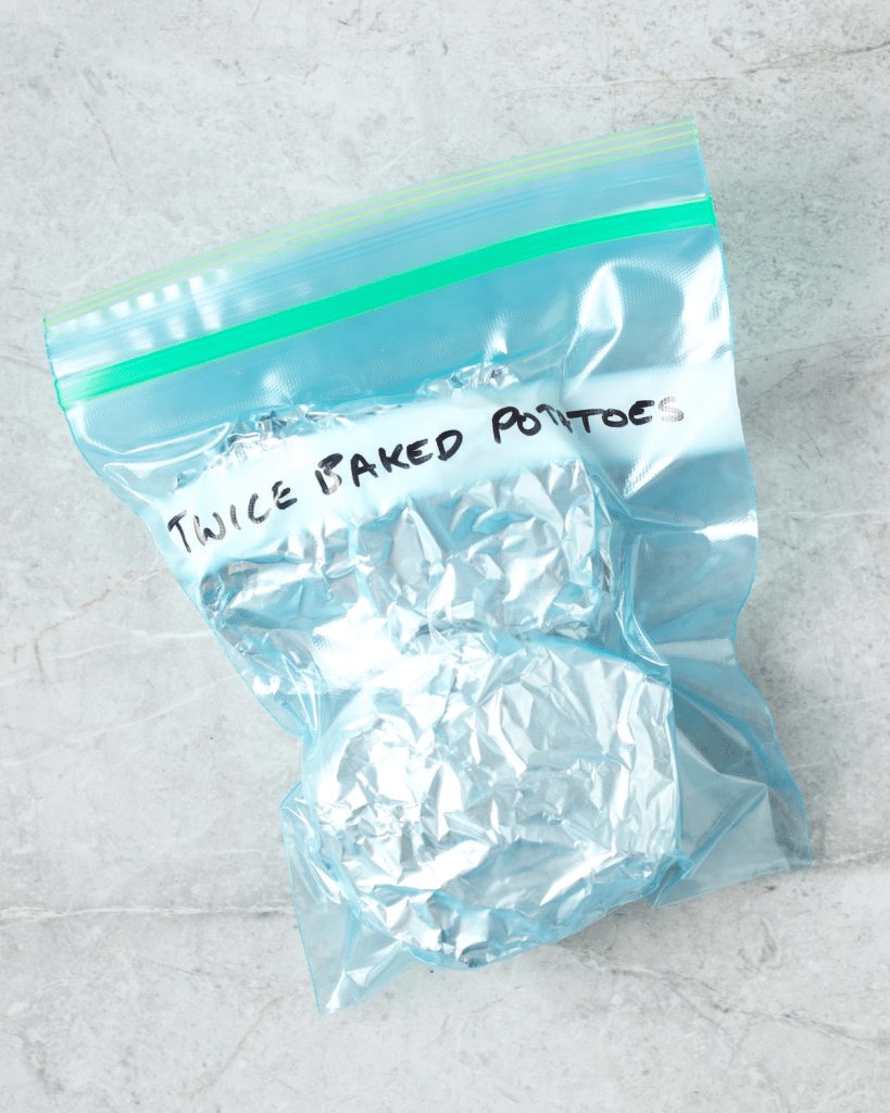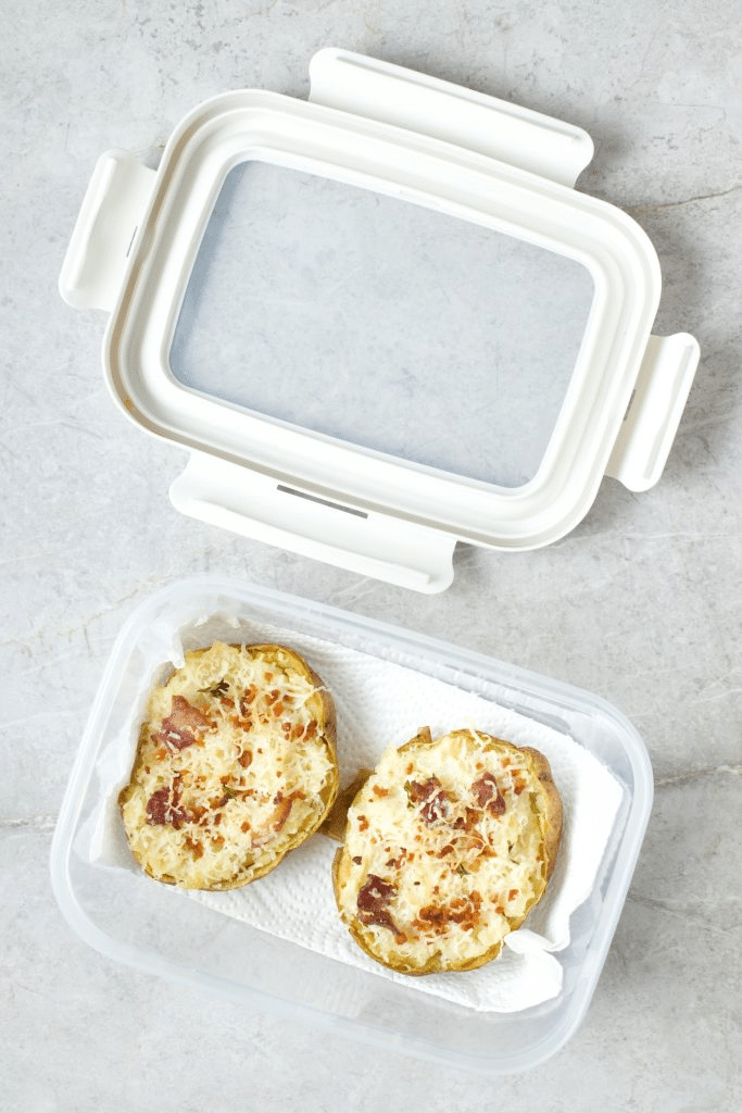 Si vous préparez vos repas et congelez vos pommes de terre avant leur deuxième cuisson, vous pouvez choisir d’ajouter ou non votre garniture au fromage à ce stade ou de l’ajouter au moment de les réchauffer.