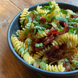S’il vous reste des restes de bacon une fois le repas terminé, essayez de les utiliser dans des recettes telles que Choux de Bruxelles et bacon ou Chaudrée de maïs et bacon.