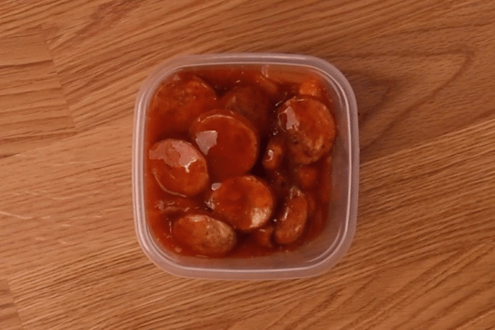 En fait, j’achète des fèves au four avec de la saucisse et c’est ce que j’ai congelé pour cet article. Tout s’est bien passé et les haricots étaient délicieux.