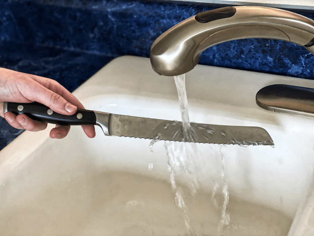 Une fois le gâteau décongelé, il est temps de le découper. Le choix du couteau est important. Nous recommandons un couteau long, dentelé et à bout pointu. Pour que la coupe soit la plus douce possible, il est également utile de placer votre couteau dans de l’eau chaude pendant quelques instants avant de commencer. Vous pouvez même réchauffer votre couteau toutes les quelques tranches. Les gâteaux ronds peuvent être coupés en triangles, tandis que les gâteaux carrés ou rectangulaires sont mieux coupés en carrés.