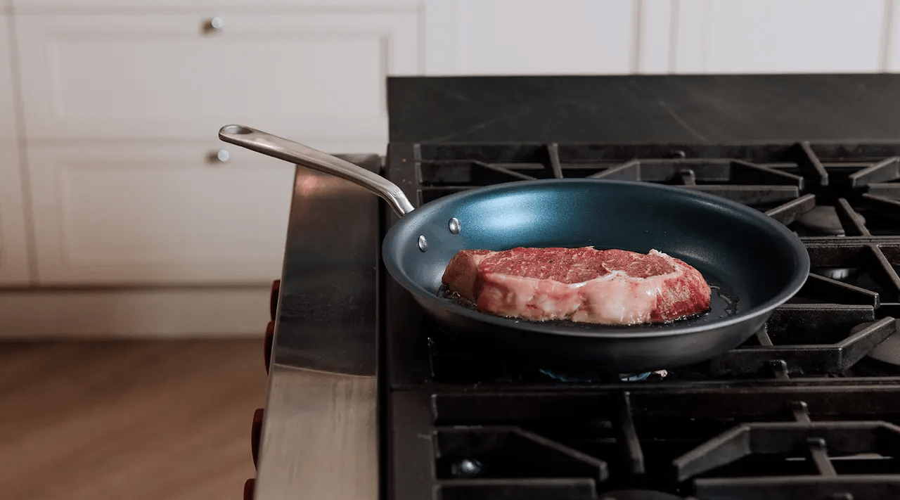 Vous savez déjà qu’une poêle antiadhésive est le meilleur outil pour cuisiner des filets de poisson, des omelettes et d’autres aliments délicats et susceptibles de coller. En revanche, lorsqu’il s’agit de saisir à vif des aliments tels que des steaks, des côtelettes de porc ou d’autres morceaux de viande, on vous a probablement appris à préférer la fonte ou l’acier au carbone aux poêles antiadhésives. Bien que ces poêles soient inégalées dans leur capacité à devenir et à rester brûlantes, vous n’avez pas besoin de courir en acheter une uniquement pour cuisiner un steak occasionnel (bien que nous les recommandions pour d’autres types de cuisson).