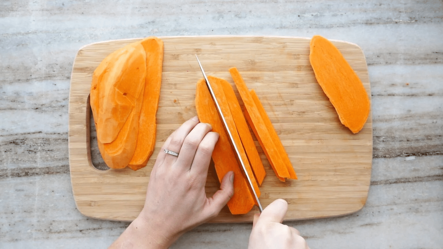 COMMENT COUPER LES PATATES DOUCES EN FRITES