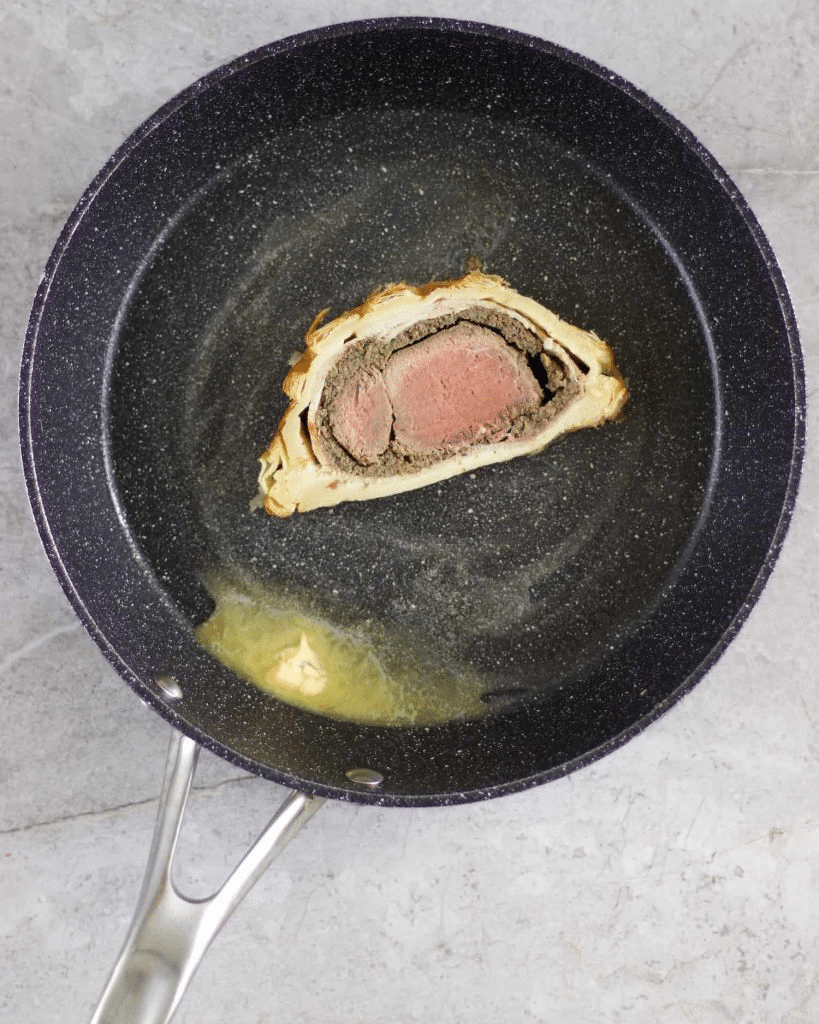 5– Retirer les tranches de Wellington de la poêle et les laisser reposer 30 secondes avant de les servir.