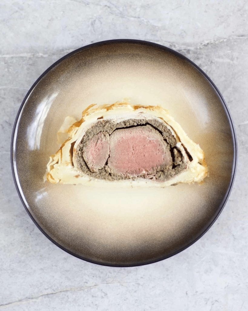 4– Laissez reposer les tranches de bœuf Wellington pendant 30 secondes avant de les servir.