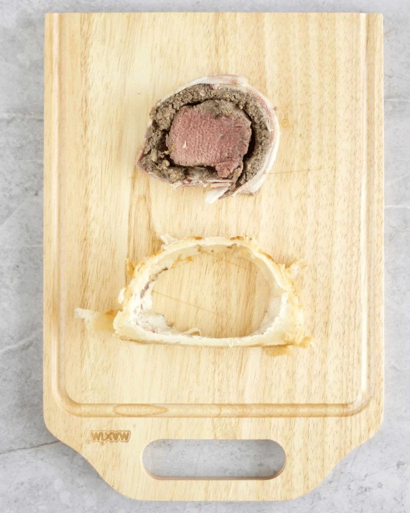 7– Laissez reposer le bœuf Wellington pendant une minute avant de le servir.