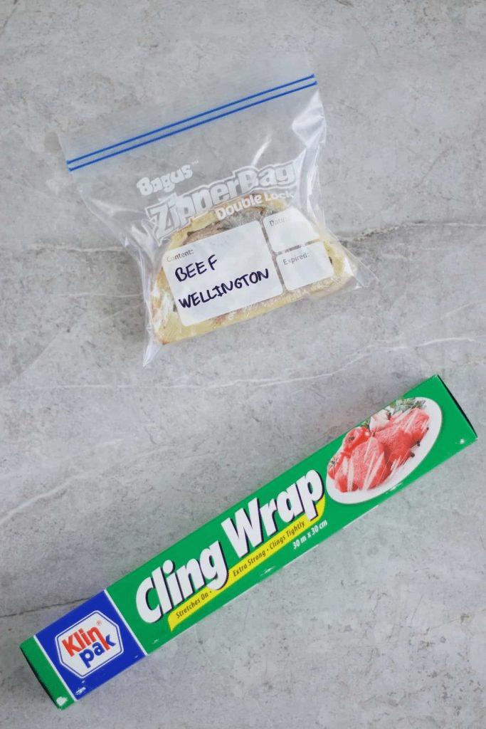 Si vous avez un bœuf Wellington entier qui ne rentre pas dans un sac de congélation, emballez-le plutôt avec du papier d’aluminium.