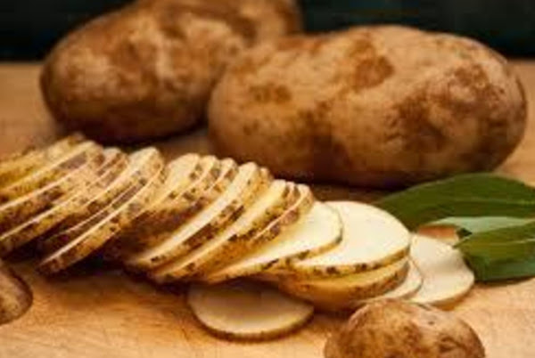 1-PRÉPARATION DE L’OIGNON : Enlever les deux extrémités de l’oignon ; le couper en deux dans le sens de la longueur et enlever la couche extérieure de chaque moitié. Placer une moitié de l’oignon, côté plat vers le bas, sur votre planche à découper et la trancher dans le sens de la largeur pour obtenir des tranches en forme de demi-lune. Répéter l’opération pour l’autre moitié de l’oignon. Mettre dans un petit bol et réserver pendant la préparation des pommes de terre.