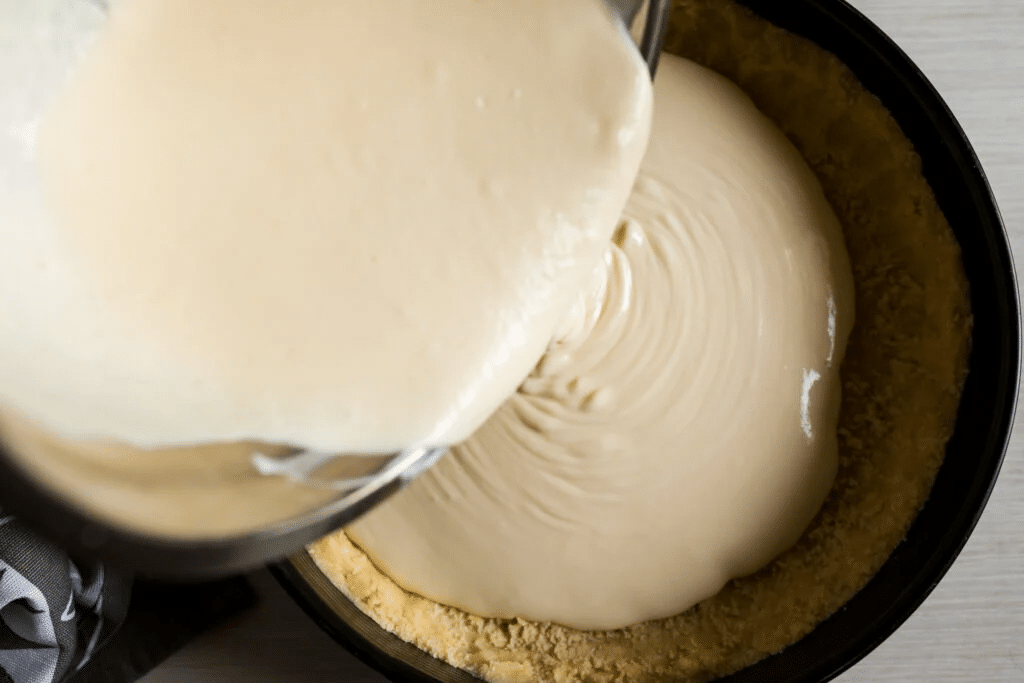 Cette couche de base est cuite au four pour former une couche croustillante et sucrée au fond du cheesecake.