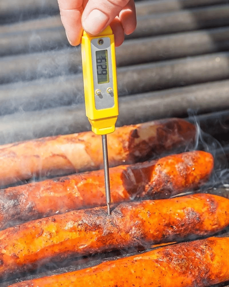 L’une des méthodes les plus simples et les plus précises consiste à utiliser un thermomètre à viande. Il suffit de le planter dans le chorizo et de vérifier la température. La température idéale est de 70°C ou 160°F.