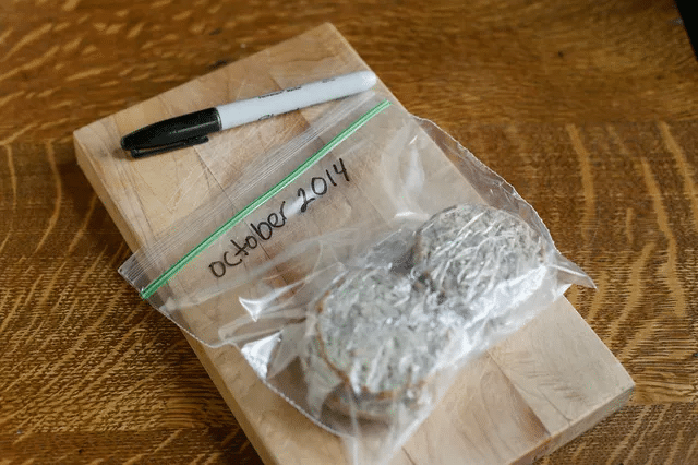 Placez la viande emballée dans un sac de congélation avec fermeture à glissière. Expulsez l’excès d’air et fermez le sac. Si la portion de viande est trop grande pour un sac de congélation, enveloppez-la dans une deuxième couche de film plastique. Étiquetez le film ou le récipient en indiquant le contenu et la date de congélation.