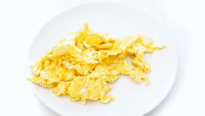 * Commencer par chauffer 1 cuillère à soupe de beurre dans une grande poêle. Ajouter les œufs et les brouiller jusqu’à ce qu’ils soient complètement cuits.